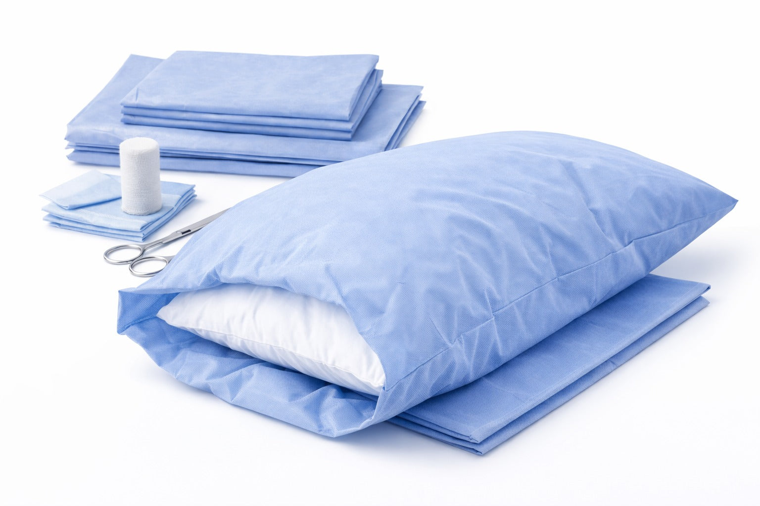 Funda de almohada desechable fabricada en tela no tejida de polipropileno, diseñada para brindar protección e higiene en entornos médicos y clínicos. Su material ligero y resistente ayuda a mantener condiciones sanitarias adecuadas durante la atención al paciente.